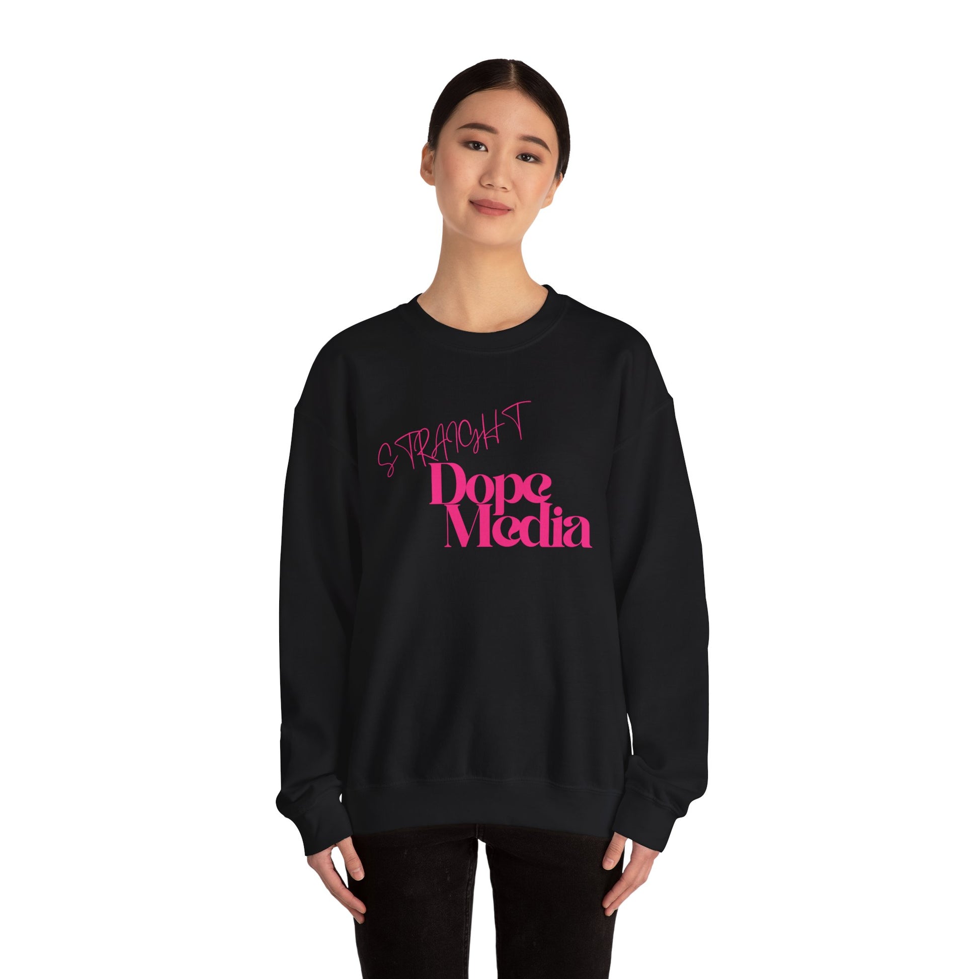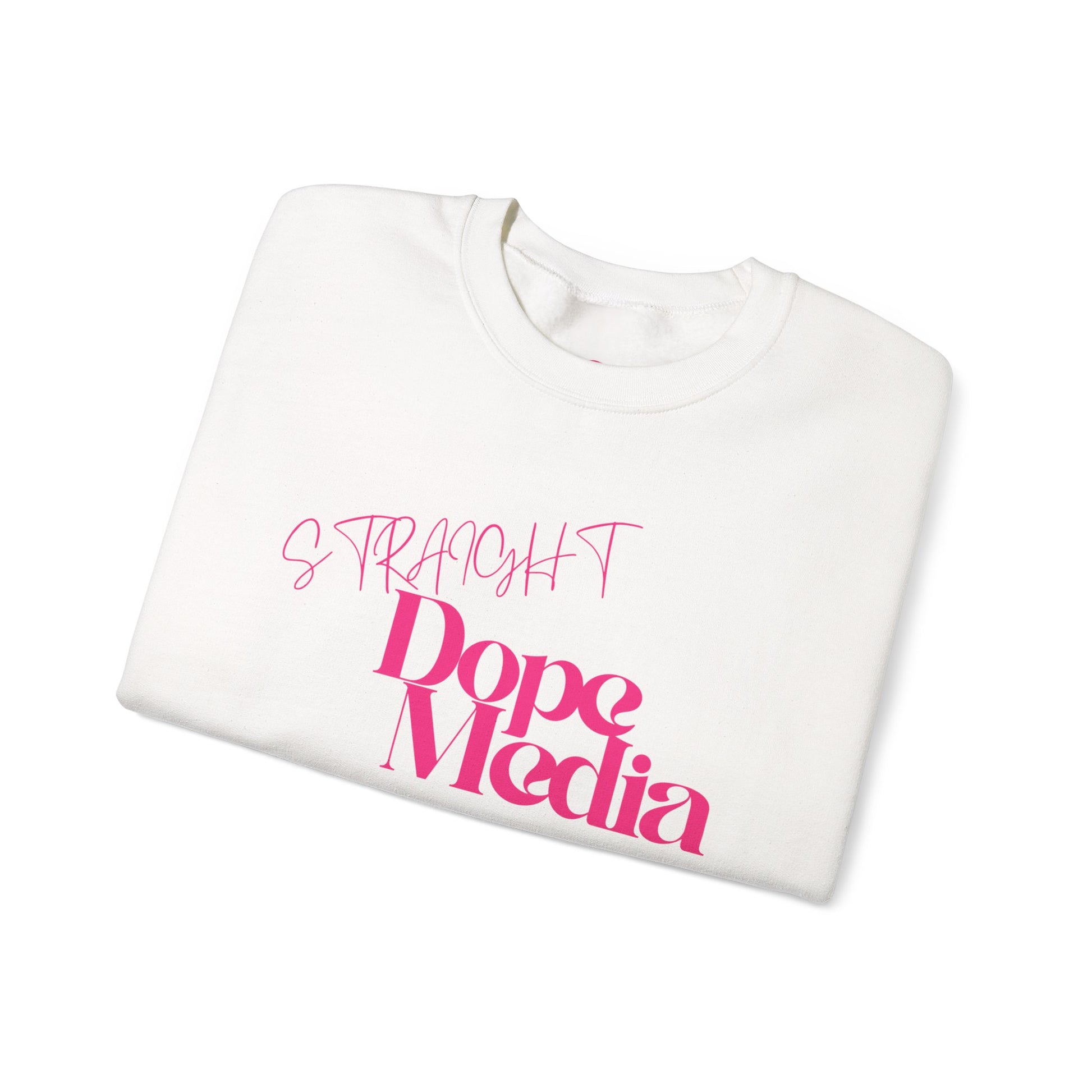 Crewneck sweatshirt with a clean, modern graphic that reads ‘Dope Media’ in bold pink type with a handwritten-style accent above. The midweight 50/50 cotton-poly blend feels substantial without being bulky, and the classic crew cut sits naturally at the collar for everyday wear. Its smooth, tubular knit body and double-needle stitching make this a lived-in piece that holds up wash after wash. Wear it when you want a subtle pop of color and a design that reads like a quiet declaration—great for casual meetings, late-night edits, or coffee runs with friends.