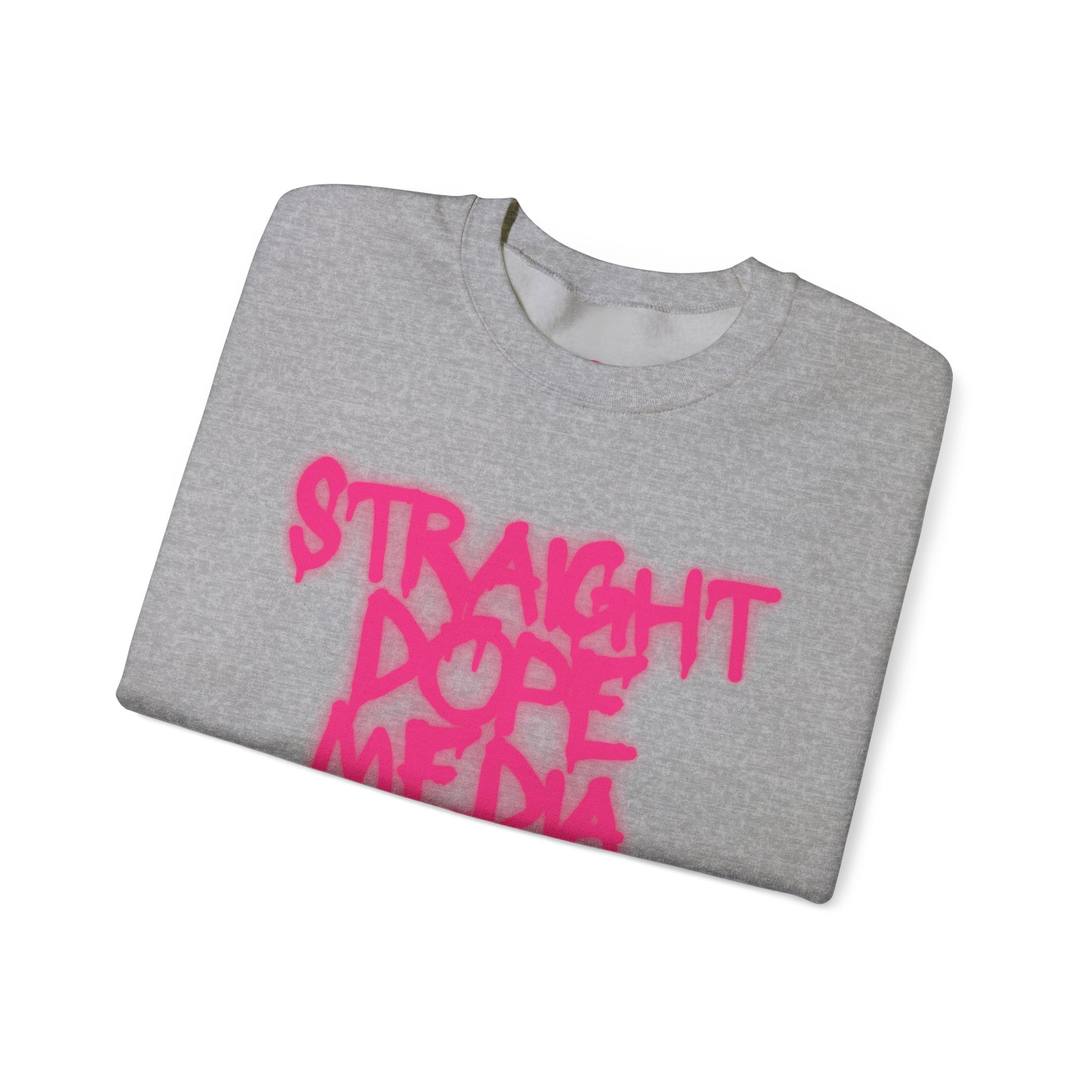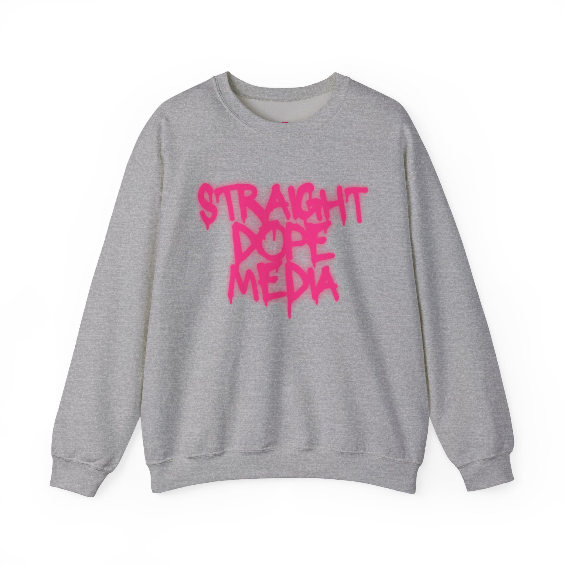 This crewneck sweatshirt carries a bold, streetwise energy with a soft, lived-in feel. The clean white fabric makes the hot-pink, graffiti-style “STRAIGHT DOPE MEDIA” artwork pop—like a tag you’d spot on a city wall at dusk. Wear it to late-night shoots, casual meet-ups, or when you need an extra layer between gigs. The fit is classic and roomy, so it layers easily over tees and hoodies while staying neat at the neckline and cuffs. Finished details—like durable double-needle stitching, a tear-away label, and OEKO-TEX certified dyes—mean it looks sharp wash after wash. Ethically sourced cotton and a sturdy cotton-poly blend give this sweatshirt the balance of comfort and resilience street creatives demand.